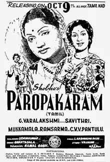 Paropakaram (transl. Willingness to help others) is a 1953 Indian Tamil-language film directed by Kamal Ghosh.[3] The film stars Ramesh Sharma and Savithri.