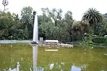 The park is located on Avenida México and Calle de Michoacán in Colonia Hipódromo, only two blocks from Avenida Insurgentes, one of the city’s main arteries.[3] It was the first modern park, created with an architectural design. It copies many of the elements of European gardens, such as ponds and walkways.[4] It has an extension of nine hectares in an elliptical design.[4] The park differs from other major parks such as the Alameda Central or Parque España. More traditional parks in Mexico City have paths that cut diagonally through them, but Parque Mexico's paths are more “organic” and less rigid, wandering around the various attractions.[4] The park hosts various cultural events, neighborhood gatherings and considered to be fashionable place to meet people.[1] One can see children playing soccer and riding bikes while adults stroll or exercise or just relax on the benches.[3]