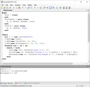 PascalABC.NET is a high-level general-purpose programming language supporting multiple paradigms. PascalABC.NET is based on Delphi's Object Pascal, but also has influences from C#, Python, Kotlin and Haskell. It is distributed both as a command-line tool for Windows (.NET Framework), Linux and MacOS (Mono), and with an integrated development environment for Windows and Linux, including interactive debugger, IntelliSense system, form designer, code templates and code auto-formatting.