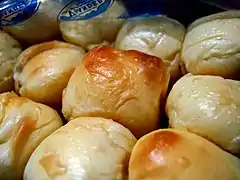 Pastel de Camiguín, (lit. 'Camiguin cake') or simply pastel, is a Filipino soft bun with yema (custard) filling originating from the province of Camiguin. The name is derived from Spanish pastel ("cake"). Pastel is an heirloom recipe originally conceived by Eleanor Popera Jose and the members of her family in Camiguin.[1][2] She started to commercially sell it from 1990.[3] It is primarily produced at the time of family's special occasions and gatherings.