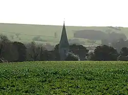 In the centre of the village is the 13th century Church of St John the Divine, restored in 1888. Above the village on the South Downs are groups of neolithic flint mines, represented by slight hollows and mounds.[3]