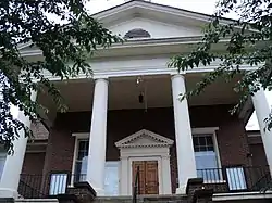 Patrick County Courthouse is a historic courthouse building located at Stuart, Patrick County, Virginia. It was built in 1822, and is a two-story, brick building consisting of a projecting, three-bay central block with flanking wings in the Jeffersonian Roman Revival style. The front facade features a pedimented portico supported by four Tuscan order columns. It is topped by a small bell tower. The building was remodeled in 1928, and refurbished in 1936 and 1971.[3]
