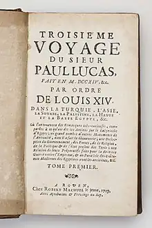 - ↑ Alfred de Lacaze, 'Lucas (Paul), voyageur et antiquaire francais', in Nouvelle Biographie Générale, ed. by Ferdinand Hoefer (Paris: Firmin Didot Frères, 1852-66), XXXII, cols 122-25.