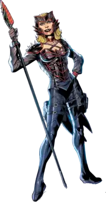 Post-Rebirth, Helen Paul is a highly decorated A.R.G.U.S. Agent whom graduated at the top of her class early on in life, being an avid spy and combatant at the age of 16.[13] After having acquired the spear of Gudra; her great Valkyrie ancestor, she would gain vast empowerment through the heretical memory of all amongst the Von Gunther line whom fought against the Amazons in the past.[14] She has also equipped herself with a vast assortment of secretive spy networking paraphernalia pinched by the Leviathan organization, acquired from its time during a globe spanning secret service agency annexation.