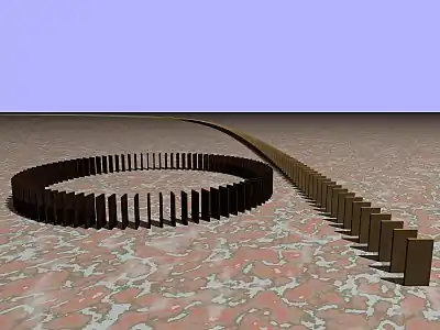 - ↑ The non-contiguous set satisfies axiom 1 as it has a 0 element, 2–5 as it doesn't affect equality relations, 6 & 8 as all pieces have a successor, bar the zero element and axiom 7 as no two dominos topple, or are toppled by, the same piece.