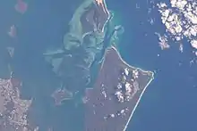 The northern tip is known as Cucumber Point.[10] A headland to the south-east is known as The Bluff.[10] The Harry Atkinson Artificial Reef has been constructed to the north of Peel Island,[11] off of Amity Banks. It was established in 1975. More closer in the west is another artificial reef, known as West Peel Artificial Reef. Peel Island has been part of a declared fish habitat zone since 1971.[12]