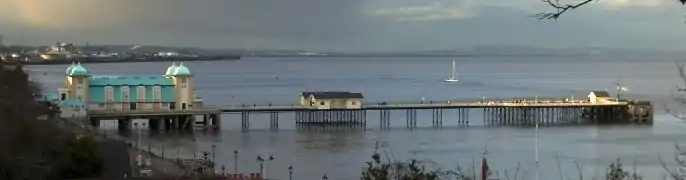 Penarth Pier is a Victorian era pier in the town of Penarth, Vale of Glamorgan, South Wales. The pier was opened in 1898 and was a popular attraction to seaside-goers at the time, who also enjoyed trips on pleasure steamers that operated from the pier. It has on several occasions been damaged by vessels colliding with the structure and in 1931, a fire broke out in one of the pavilions. This wooden pavilion was never replaced, but a concrete pavilion has been used over the years as a concert hall, ballroom, cinema and for other purposes. It is currently home to the Penarth Pier Pavilion.