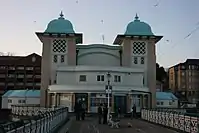 During World War I, the pleasure steamers were used as minesweepers and the pier was requisitioned by the army. After the war, it was found that the landing stage was considerably damaged, and compensation payments were inadequate to fund the necessary repairs. The pier went into a period of decline, and in 1929, it was sold to Penarth Borough Council. As a result, a new concrete landing stage was built at the seaward end,[2] and in 1930, a spectacular Art Deco pavilion, built of ferro-concrete, was constructed at the shoreward end.[5][6]
