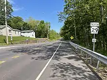 At this point, PA 29 turns north onto two-lane undivided State Road and runs through wooded areas with the abandoned railroad parallel to the east. The road curves northwest and passes to the west of a quarry before continuing through forests. The route turns north and passes through Aldham before it makes a curve to the northeast and crosses the Pickering Creek. PA 29 passes under the abandoned railroad line and enters Schuylkill Township, heading through a mix of woods and fields with some homes parallel to the creek. The road turns east and then northeast, heading away from the Pickering Creek and continuing into suburban residential development. The route becomes the border between Phoenixville to the northwest and Schuylkill Township to the southeast before fully entering Phoenixville as Main Street, passing homes. PA 29 heads to the east of Phoenixville Hospital before it comes to an intersection with PA 23, at which point Main Street splits to the north and PA 29 continues northeast along Manavon Street. The route continues through residential areas, turning north onto Starr Street. PA 29 heads north into the commercial downtown of Phoenixville, where it turns east onto Bridge Street. The route continues east and is joined by the Schuylkill River Trail from the west, passing under Norfolk Southern's Harrisburg Line north of the former Phoenixville station before it comes to the Mont Clare Bridge over the Schuylkill River.[3][4]