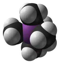 Pentamethylbismuth (or pentamethylbismuthorane[2]) is an organometalllic compound containing five methyl groups bound to a bismuth atom with formula Bi(CH3)5. It is an example of a hypervalent compound. The molecular shape is trigonal bipyramid.[3]