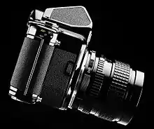 The Pentax 6×7 (called "Pentax 67" after 1990) is a SLR medium format system film camera for 120 and 220 film, which produces images on the film that are nominally 6 cm by 7 cm in size (actual image on the film is 56 mm × 70 mm), made by Pentax. It originally debuted in 1965 as a prototype dubbed the Pentax 220. Since then, with improvements, it was released in 1969 as the Asahi Pentax 6×7, as well as the Honeywell Pentax 6×7 for the North American import market. In 1990, it received a number of minor engineering updates and cosmetic changes and was renamed as the Pentax 67.