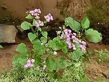 Pericallis echinata is an upright herbaceous perennial plant, growing to 30–50 cm (12–20 in). The leaves are rounded in shape, with toothed margins. The inflorescence is composed of 5–15 heads of flowers, each about 2–5 cm (0.79–1.97 in) across, with 11–14 pink ray florets.[2]