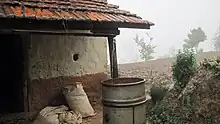 Hügelkultur is the practice of burying wood to increase soil water retention. The porous structure of wood acts like a sponge when decomposing underground. During the rainy season, sufficient buried wood can absorb enough water to sustain crops through the dry season.[35][36][37] This technique is a traditional practice that has been developed over centuries in Europe and has been recently adopted by permaculturalists.[38] The Hügelkultur technique can be implemented through building mounds on the ground as well as in raised garden beds. In raised beds, the practice "imitates natural nutrient cycling found in wood decomposition and the high water-holding capacities of organic detritus, while also improving bed structure and drainage properties." This is done by placing wood material (e.g. logs and sticks) in the bottom of the bed before piling organic soil and compost on top. A study comparing the water retention capacities of Hügel raised beds to non-Hügel beds determined that Hügel beds are both lower maintenance and more efficient in the long term by requiring less irrigation.[39]