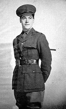 Baker was educated at Eastbourne College.[2] He was preparing to study at the University of Cambridge until the imminent outbreak of World War II led him to enlist in the Royal Artillery.[9] Although he could have taken an immediate commission, Baker and a friend who had joined up at the same time determined to serve at least six months in the ranks[10] before accepting a posting to an Officer Cadet Training Unit in Catterick Garrison in March 1940. He was then posted to an artillery regiment based in Lockerbie, Dumfriesshire, and served for fourteen months across southern Scotland.[11] He was commissioned as a 2nd Lieutenant on 7 September 1940.[12] Considering the job of an artillery officer boring, Baker accepted in October 1941 a posting to be a Staff Captain in Military Intelligence based at the War Office. He hoped that the new appointment would make it more likely that he could obtain an overseas posting.[13] After four months he applied for a transfer, although it took a further six months to persuade his superiors to let him leave.[14]