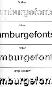 After the output for plotters was programmed successfully - to make possible comparing digital output and original -, more software was developed to calculate first variations of fonts, for example italic, outlined and shaded typefaces.