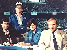 Mansbridge (right foreground) with CBC panelists and producers during Pope John Paul II's second Canadian tour in September 1984