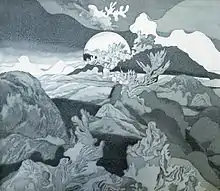 This is where my primal longing to move away from familiar landscapes to worlds that seem very alienating came together - to chaos landscapes where everything is in a tremendous flux, where there is something threatening above it, where one still senses nature in a small corner [...] - is this still a world of nature or a world to come or a past world ...?