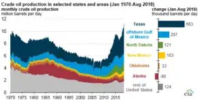 - ↑ "U.S. Field Production of Crude Oil (Thousand Barrels per Day)". www.eia.gov. Retrieved September 22, 2019.