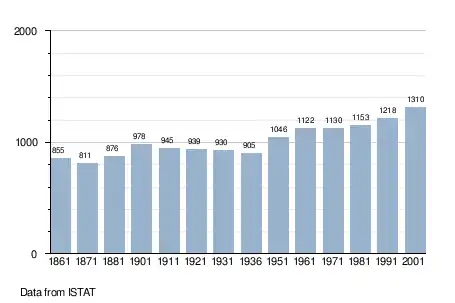 - ↑ "Popolazione Residente al 1° Gennaio 2018". Italian National Institute of Statistics. Retrieved 16 March 2019.