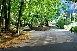 Pettygrove Park is a city park in downtown Portland, Oregon, United States.[1] It is the second park in a series of urban open spaces designed by American landscape architect Lawrence Halprin in the South Auditorium District urban renewal area. The soft mounds of landscaping are responsible for the park's nickname of 'Mae West Park'.[2][3]