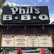 - ↑ "Renovated Phil's BBQ Point Loma location reopens". CBS8. 2014-02-11. Retrieved 2015-07-01.