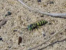 Philanthus ventilabris is a species of bee-hunting wasp (or "beewolf") found throughout North America. It is a solitary species.[2]