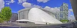 The Philharmonie Luxembourg, also known officially as the Grande-Duchesse Joséphine-Charlotte Concert Hall (French: Salle de concerts grande-duchesse Joséphine-Charlotte, German: Konzertsaal Großherzogin Joséphine-Charlotte), is a concert hall located in the European district in the Luxembourg City quarter of Kirchberg. Opened in 2005, it now plays host to 400 performances each year.