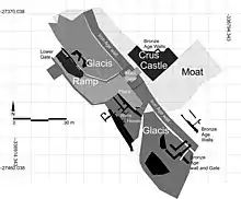 A city gate complex with storage rooms dating from the first millennium BC was discovered during the mid-1990s excavations. It separated the upper town from the lower town around the harbor.