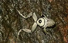 Phrynobatrachus cricogaster is a species of frog in the family Phrynobatrachidae. It is found in the mountains of western Cameroon and southeastern Nigeria. Common name Nkongsamba river frog has been coined for it.[1][2][3] The specific name cricogaster is derived from the Greek krikos for "ring" and gaster for "belly", in reference to the prominent ring pattern on its venter.[3]