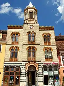 A small one-room chapel opened inside the Brașov Citadel in 1829. In 1866, due to deterioration, it was closed down, its congregants assigned to the Greek Church. In 1895, Archbishop Miron Romanul laid the cornerstone of the present church, which was dedicated by his successor Ioan Mețianu in 1899.[1] The church represented a symbolic advance for the city’s Romanians, from the peripheral St. Nicholas into the main square, traditionally a Saxon space.[2]