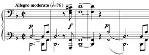 - The substantial first movement Allegro moderato presents most of the thematic material and motifs revisited in the later movements.