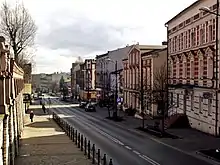During the joint German-Soviet invasion of Poland, which started World War II, Piekary was captured by Germany in September 1939, and then was under German occupation until 1945. Already in September 1939, the Germans carried out several executions of Poles (see Nazi crimes against the Polish nation). On September 6, Germans murdered three Poles in the present-day district of Brzozowice.[6] On September 17, the Freikorps murdered two miners, one local official and one former Silesian Uprisings participant in Piekary.[7] Several miners from the present-day district of Brzozowice were murdered in nearby Lasowice (present-day district of Tarnowskie Góry).[8] Local teachers were among Polish teachers murdered in Nazi concentration camps.[9] The Polenlager No. 188, a forced labour camp for Poles, was operated in the city.[10] During the occupation, the city's main street, Bytomska, was renamed Adolf Hitler Street (Adolf-Hitler-Straße).[5]