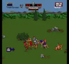 Pigskin 621 A.D. is an arcade game released in 1990 by Midway Manufacturing under the "Bally Midway" label.[1] One player can battle the computer, or two players can battle head-to-head. Two teams compete to score as many touchdowns as possible in the tradition of American football, but actual play is more similar to rugby football.