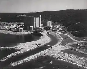 Pilgrim Nuclear Power Station (PNPS) is a closed nuclear power plant in Massachusetts in the Manomet section of Plymouth on Cape Cod Bay, south of the tip of Rocky Point and north of Priscilla Beach. Like many similar plants, it was constructed by Bechtel, and was powered by a General Electric BWR 3 boiling water reactor inside of a Mark 1 pressure suppression type containment and generator.[2] With a 690 MWe production capacity, it produced about 14% of the electricity generated in Massachusetts.[3]