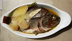 Pinangat na isda, also called pangat na isda, is a Filipino dish from Southern Luzon consisting of fish and tomatoes stewed in a broth soured with fruits like calamansi, bilimbi, tamarind, or santol. It can also be used to cook shrimp. It is similar to sinigang, but it is not as tart.[1][2][3][4][5][6]