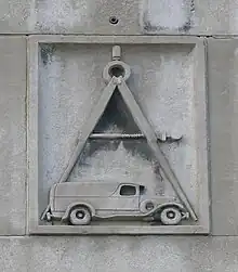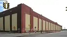 The Fisher Body Plant 21 is located on the southeast corner of Piquette and St. Antoine.[11] It was designed in 1921 by Smith, Hinchman & Grylls for Fisher Body, who manufactured Buick and Cadillac bodies in the plant until 1925.[15] The plant is six stories tall, with a footprint of 200 feet (61 m) by 581 feet (177 m) and an interior area of 536,000 square feet (49,800 m2).[16] During the Great Depression, Fisher suspended production and the building was used as a soup kitchen and homeless shelter.[17] The plant was used as an engineering design facility from 1930–1956;[18] during World War II, the factory produced Lockheed P-80 Shooting Star Planes, Vought F4U Corsair Shipboard Fighters, and some assemblies for B-25 Mitchell bombers.[17] After 1956, the plant was used to build Cadillac limousine bodies; GM closed the plant in 1984.[17] After GM left, several paint companies used the building; it closed for good in 1994.[16][17] In 1999, as a result of unpaid property taxes, the building became the property of the City of Detroit and was re-addressed as 6051 Hastings Street. The building was documented by the Historic American Engineering Record in 2003.[19]