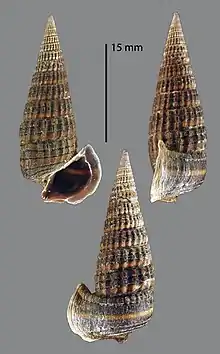 | Shell of Pirenella microptera (specimen at MNHN, Paris) | |