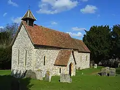 Southwest of the parish church is an 18th-century barn that seems to include the remains of an early 14th-century chapel.[5] This may be linked with the D'Oyley family of Oxford, who held the manor of Pishill and in 1406 received a licence to build a chapel at the manor house that used to be in the village.[6] The Stonor family of Stonor Park, just over 1 mile (1.6 km) away, were recusants during and after the English Reformation. With the support of the Stonors and Jesuit priests who stayed with them, a number of Pishill families remained Roman Catholic throughout the 16th, 17th and 18th centuries. In 1878 the Church of England incumbent of Pishill reported that a third of the 200 population of his parish were Roman Catholic.[7]