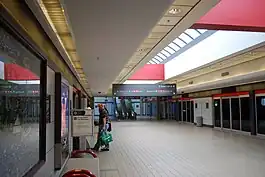Designed and installed at a cost of $14 million by Adtranz (now Bombardier), it runs in two parallel tunnels to connect the landside terminal with the airside terminal.