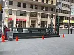 Principal photography on the film commenced in Toronto on June 2, 2014, using downtown streets decorated to resemble New York City.[32] Given sequences such as the Pac-Man chase happened at night, often the filmmakers would close the streets off from traffic at 7 PM and redecorate them to resemble New York until it was dark enough, filming from 9:30 PM up to 5:30 AM.[33] On July 29, filming was taking place outside of Markham, Ontario.[34] Filming was also done in the Rouge Park area, and extras were dressing in costume at Markham's Rouge Valley Mennonite Church.[34] On August 4, actors Josh Gad, Peter Dinklage, and Ashley Benson were spotted in Toronto filming scenes for the film on Bay Street, which was transformed into a city block in Washington, D.C., and littered with wrecked vehicles and giant holes in the pavement.[35] The Ontario Government Buildings was doubled to transform into a federal office building in Washington. Actors were aiming at aliens, which could not be seen, but were added later with computer-generated imagery.[35] On August 26, 2014, filming took place in Cobourg.[36] Filming was completed in three months, with 12 hours of shooting a day.[37]