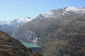![]() Pizzo di Cassimoi (far left) from above Zervreilasee | |