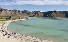 Playa Balandra is a beach located on the Baja California Sur peninsula of Mexico in La Paz. It is located on the Eastern side of the peninsula, but faces west, as the southern tip comes up. This beach is located on Balandra Bay. The water is very shallow, allowing visitors to walk across the bay to the other side. There are also many sandbanks located on this bay.