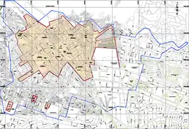 During the Inca period, the main square was larger than the current square because in addition to the current square (former Huacaypata) it occupied the entire area of the current Plaza Regocijo (formerly Cusipata), the "Hotel Cusco" and the blocks located between Calle Espaderos, Calle del Medio and Calle Mantas.[10] Precisely these blocks and the Calle del Medio were crossed by the Saphy River (currently covered and made sewer), which divided the square into its two sectors already known.[11] It was the religious and administrative center of the Inca Empire. As well as being the main axis of the Inca road.[12] Around the square were the palaces of Pachacuti, Huayna Capac and Viracocha Inca.[13]