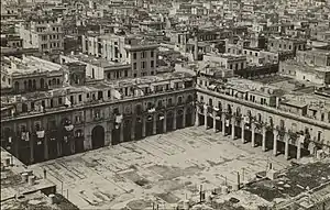 The main, upper floor was all residential and occupied by the homes of some 200 families. The building was mostly a market for the national lottery,[47] and sold no less than 50 percent of the tickets that were printed for the entire country.[48] In 1947, the Ministry of Health closed the Mercado de Colón or Plaza del Polvorín, and the vendors operating in it relocated to the central courtyard of the Plaza del Vapor, putting an end to the baseball and football games that took place in this space.
