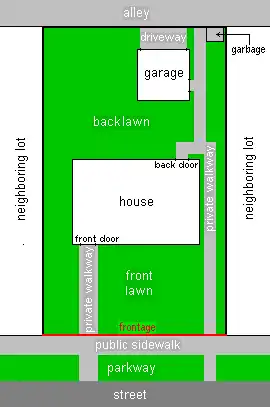 In front of many lots in urban areas, there are pavements, usually publicly owned. Beyond the pavement, there may sometimes be a strip of land called a road verge, and then the roadway, being the driveable part of the road.