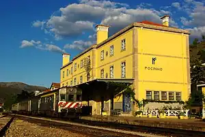 The Pocinho railway station is an interface of the Douro line, which serves the town of Pocinho, in the municipality of Vila Nova de Foz Coa, in northern Portugal. It also served as a junction with the Sabor line during its operation between 1911[1] and 1988.[2] Since 1988 it has been the terminus of the Douro Line, given the closure of the section that extended to Barca d'Alva and Spain.[3]