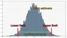 Here two limits are computed from the set of observations, say ln and un and it is claimed with a certain degree of confidence (measured in probabilistic terms) that the true value of γ lies between ln and un. Thus we get an interval (ln and un) which we expect would include the true value of γ(θ). So this type of estimation is called confidence interval estimation.[2] This estimation provides a range of values which the parameter is expected to lie. It generally gives more information than point estimates and are preferred when making inferences. In some way, we can say that point estimation is the opposite of interval estimation.
