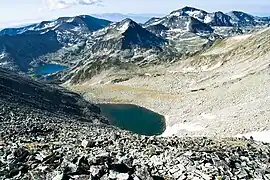 Polezhanski Lakes (Bulgarian: Полежански езера) are a group of two glacial lakes situated in the northern part of the Pirin mountain range in southwestern Bulgaria. They are located in the Southern Polezhan cirque between the summits of Polezhan (2,851 m) to the north and Dzhengal (2,730 m) to the south.[1] They are located in the Pirin National Park, a UNESCO World Heritage Site. The lakes drain into the northwesternmost of the larger Popovi Lakes group, forming the headwaters of the river Retizhe, a right tributary of the Mesta.[2][3]