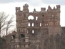 ![]() Remains of Bannerman Castle viewed from the railroad on the eastern bank of the Hudson River, circa 2003 | |