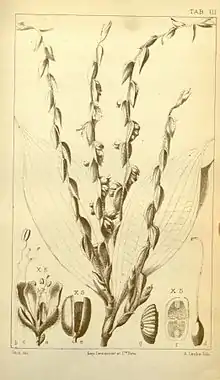 - ↑ illustration accompanying original description of the genus. C.B. Clarke in Alphonse Pyramus de Candolle; Lithography by A. Leuba - Table III from C.B. Clarke's treatment of Commelinaceae in Monographiæ phanerogamarum, 1881